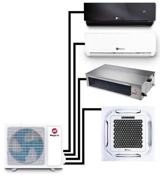 Il est également possible de raccorder des unités intérieures de différents type: Murale, plafonnier, cassette, console ou même gainable…