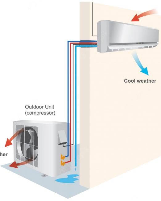 Il est à noté que dans ce type de climatiseur, le compresseur se trouve dans la pièce d’occupation.